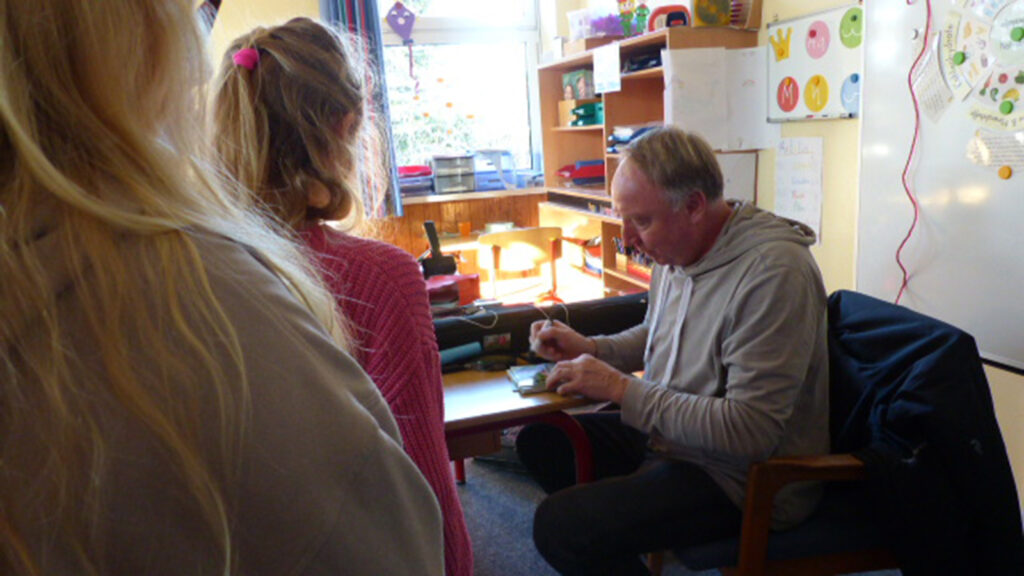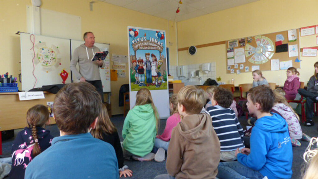 Am Mittwoch, den 20.11.2024 besuchte uns der Autor der Kinderbuchreihe „Die drei ??? Kids“ Ulf Blanck und stellte uns sein neuestes Buch „Die drei ??? Kids – 100 Stunden“ vor.