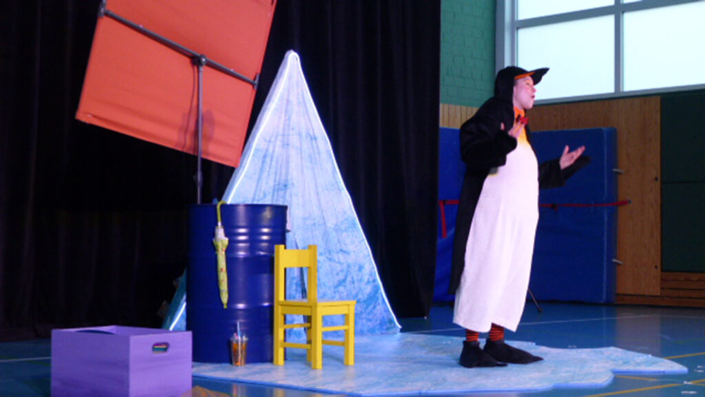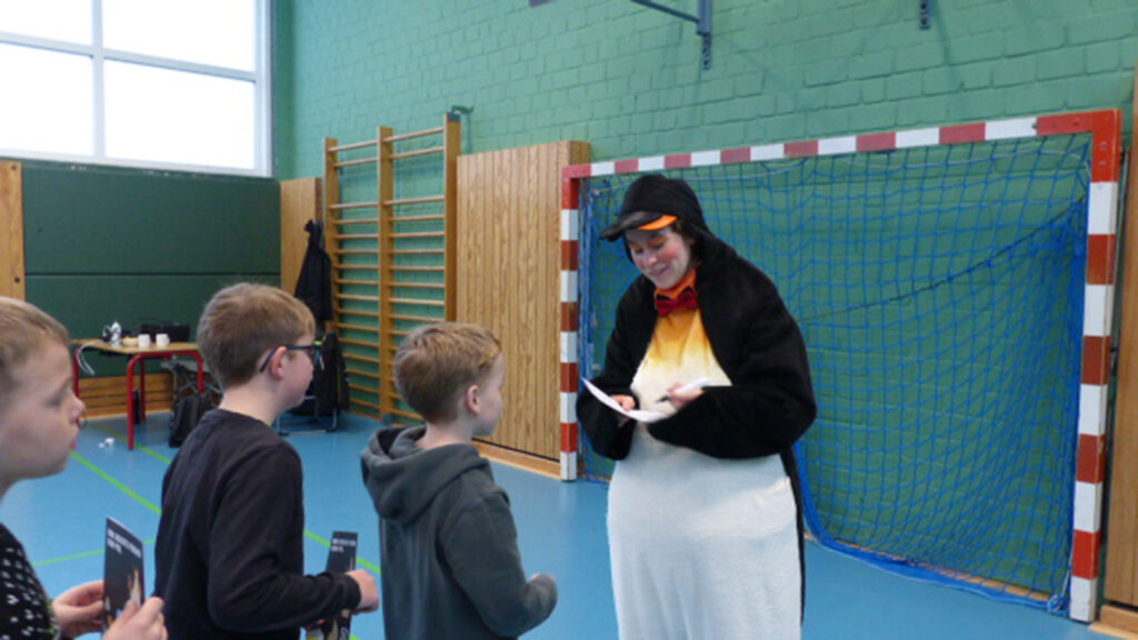 Am 12.12.2024 durften sich die Kinder unserer Schule sowie die zukünftigen Schulkinder der Kindergärten in Waabs und Vogelsang-Grünholz auf eine Theateraufführung des mobilen Weihnachtsmärchens „DER DICKSTE PINGUIN VOM POL“ freuen.
